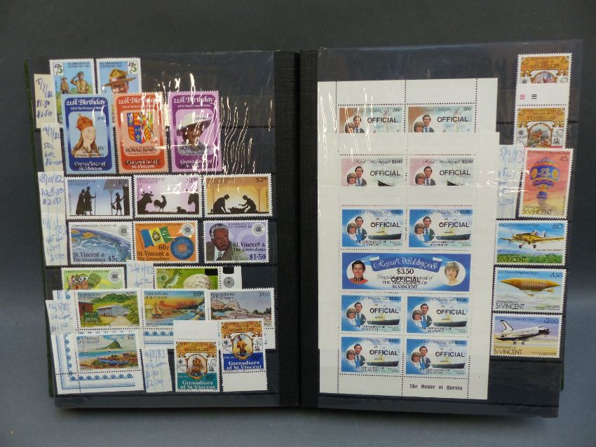 Three albums of St Vincent first day covers and a stockbook of mainly St Vincent QEII stamps