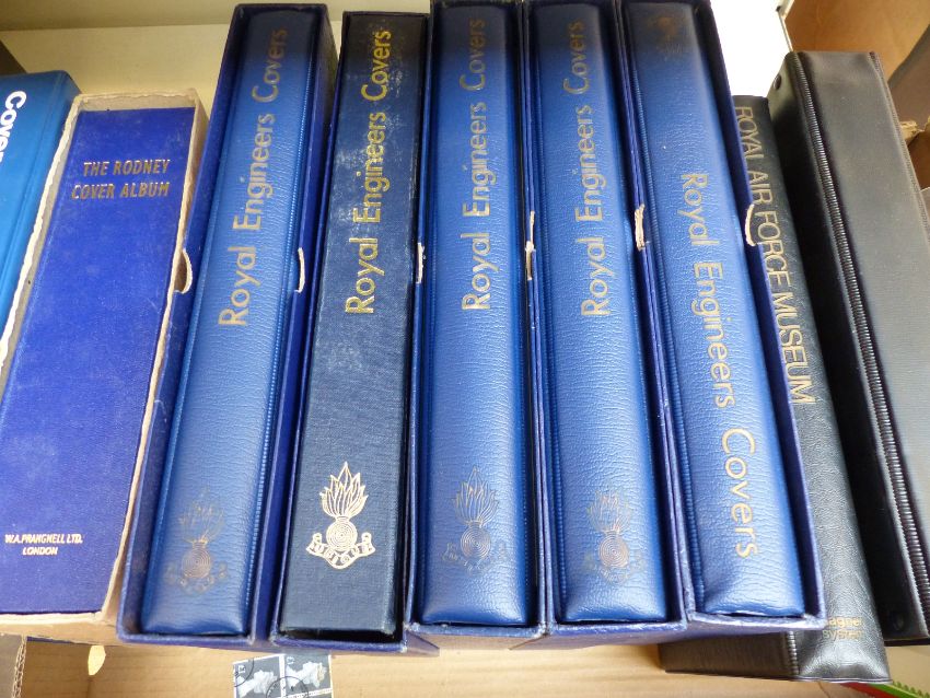 Nine albums of first day covers plus loose examples many relating to The Royal Engineers with some signed covers