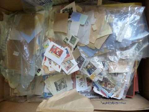 A very large quantity of loose all world stamps in packets, tins etc.