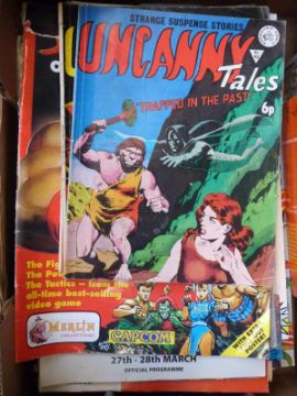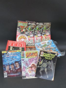 A large quantity of comics to include Uncanny Tales numbers 70, 87, 90, 92, 99, 114, Ghostly Tales, 113, Ghost Manor 21, The many ghosts of Doctor Graves 48 etc, together with Eagle 1988 annual and number 1 with gifts, Return of the Jedi storybook etc