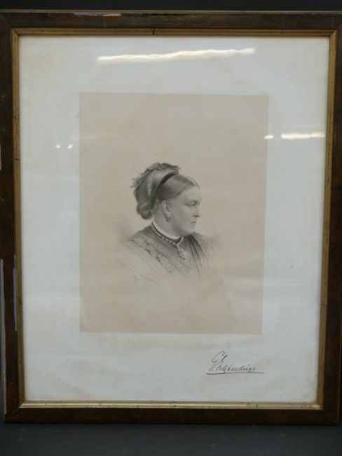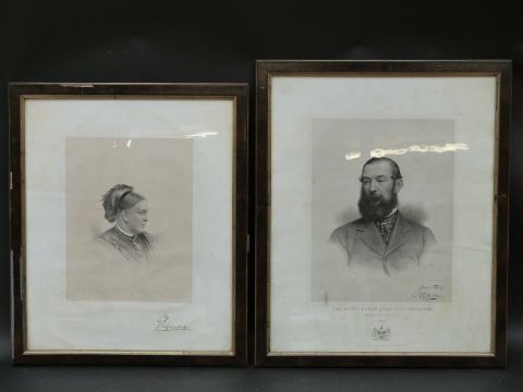 An artists proof etching of the Right Hon Lord Fitz-Hardinge from Berkeley Castle 1872, together with a similar example possibly of his wife, both framed