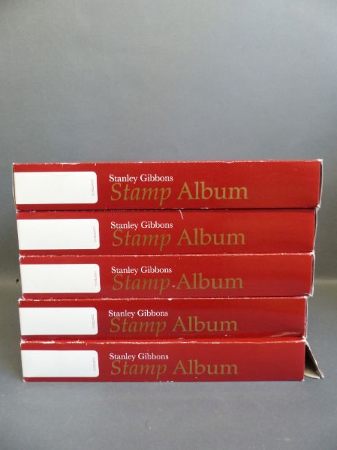 Five Stanley Gibbons albums, comprising Great Britain Volumes 1-4 and Australia Volume 1, mint and used stamps
