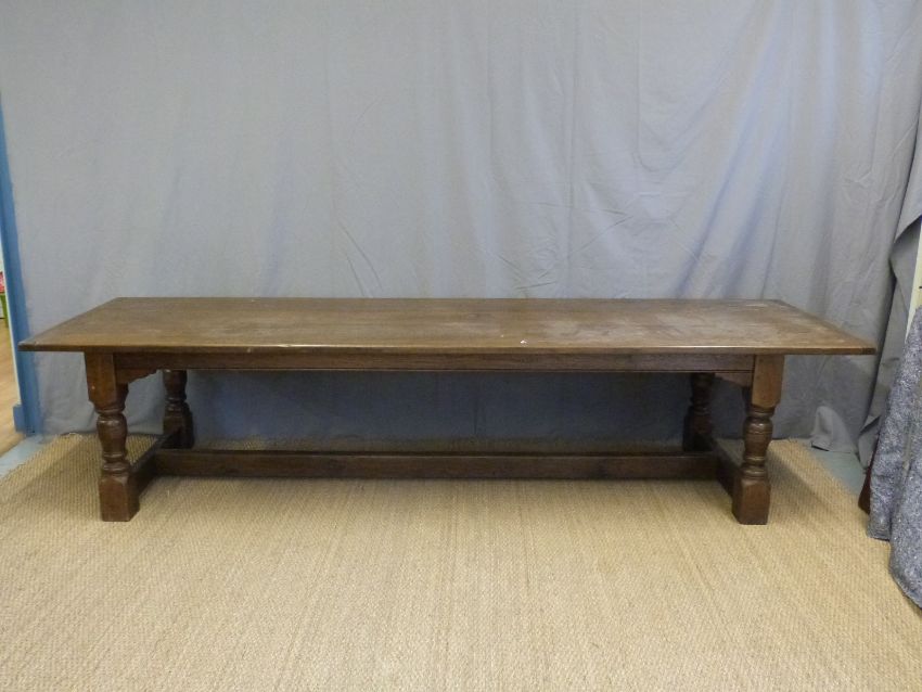 A large oak peg jointed refectory table (L340 x W101 x H78cm)
