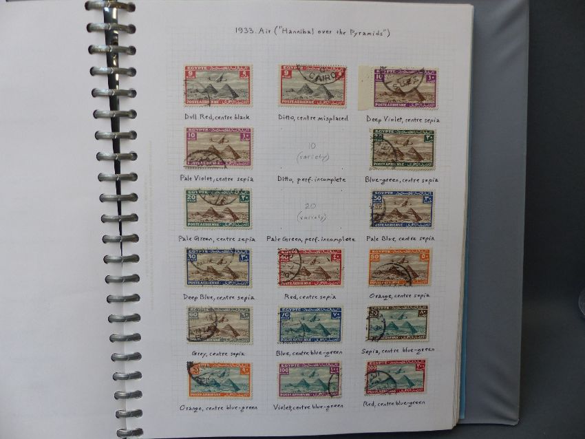 A collection of Egyptian stamps 1866-1978 in three albums, one stockbook and packets. Includes covers and miniature sheets, competition entries on individual sheets etc. A remainder collection but with many useful stamps