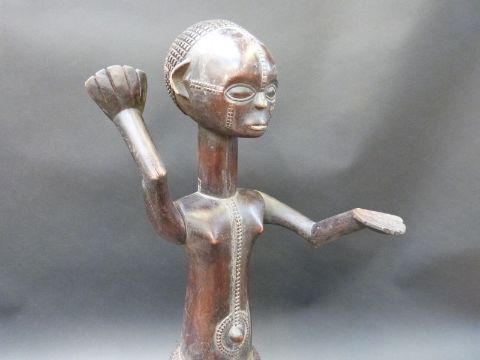 A carved wooden Tabwa figure from the Congo, 70cm tall
