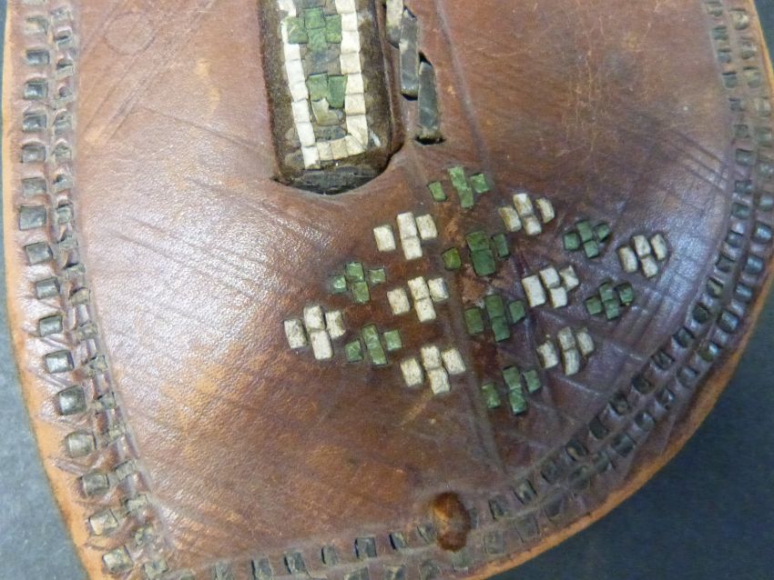 A pair of tribal leather and woven sandals, bracelet and a comb