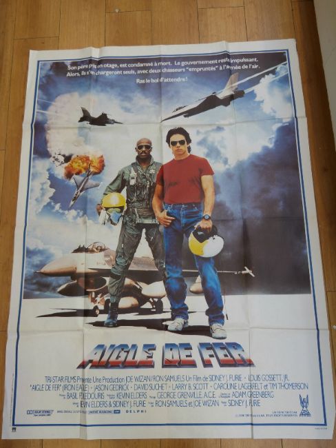 A vintage French film poster for 'Les Ponts de Toko-Ri' une Production Perlberg Seaton starring William Holden, Grace Kelly & Mickey Rooney (size approximately 80 x 120cm); 'L'Attaque Dura 5 Jours', 'Le Pont le Plus Long' (size 117 x 160cm), A vintage French film poster for 'Aigle de Fer' starring Sidney J Furie c 1986 (size 119 x 160cm) together with a poster for 'La Epopeya del Aire' starring Bill Williams and Ann Rutherford