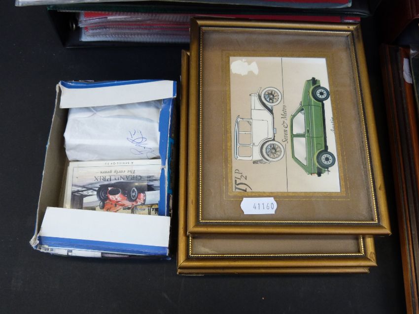 A quantity of motoring interest cigarette cards in albums and frames to include Lambert 7 and Butler motor car 'A' series 1922 and second series 1923, Churchman's cigarettes, Wills, Players, etc framed cigarette cards of motor cars, historic cars, coin collection etc.