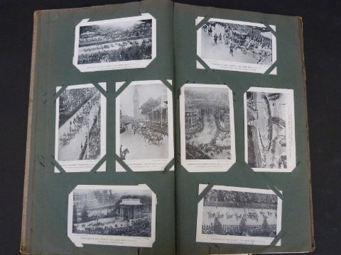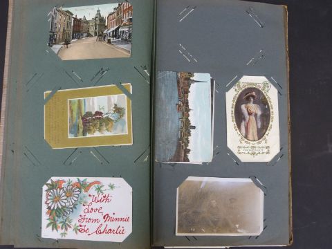 An Edwardian postcard album including Coronation cards, Tiverton, Worcester, stars of stage and screen, Newport, humour, India, West Country, WWI Bulford camp, Salisbury, Aylesbury railway disaster, Shrewton fire engine, Suez canal, Port Said, various Indian scenes including Attock ferry etc., approximately 80 plus cards