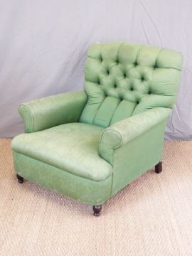 A button back upholstered green armchair