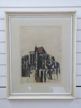 Bridget Kay French signed limited edition engraving of Chartres (1/100) 50x35cm