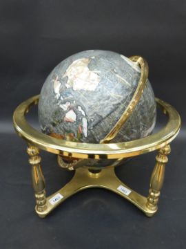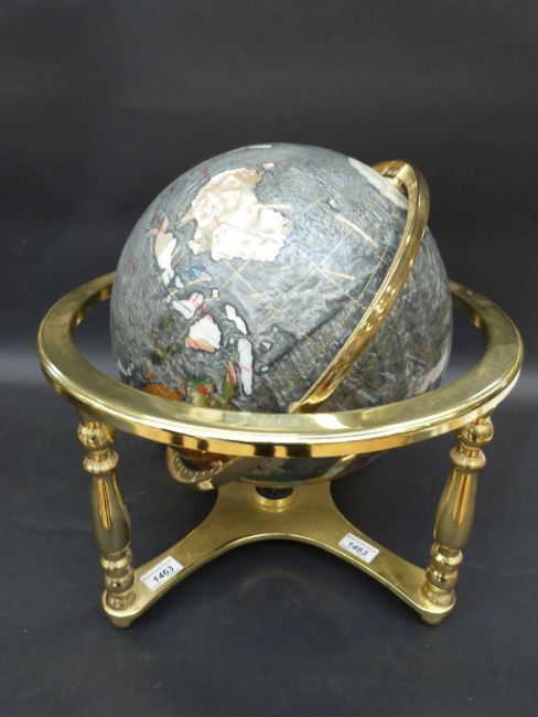 A pietra dura globe with grey coloured sea, height 42cm