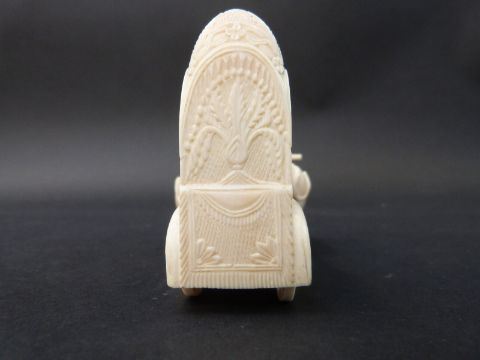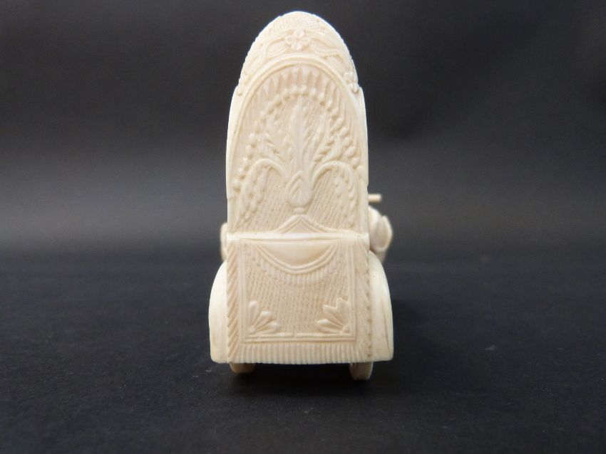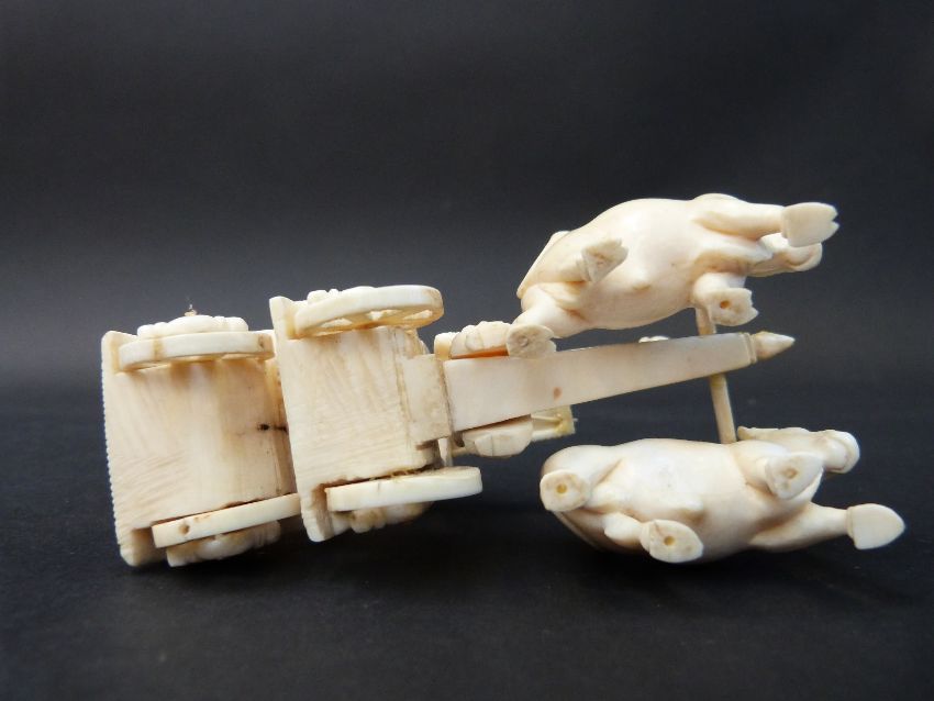 Early 20thC carved Indian ivory four wheel carriage towed by two oxen, 11cm long