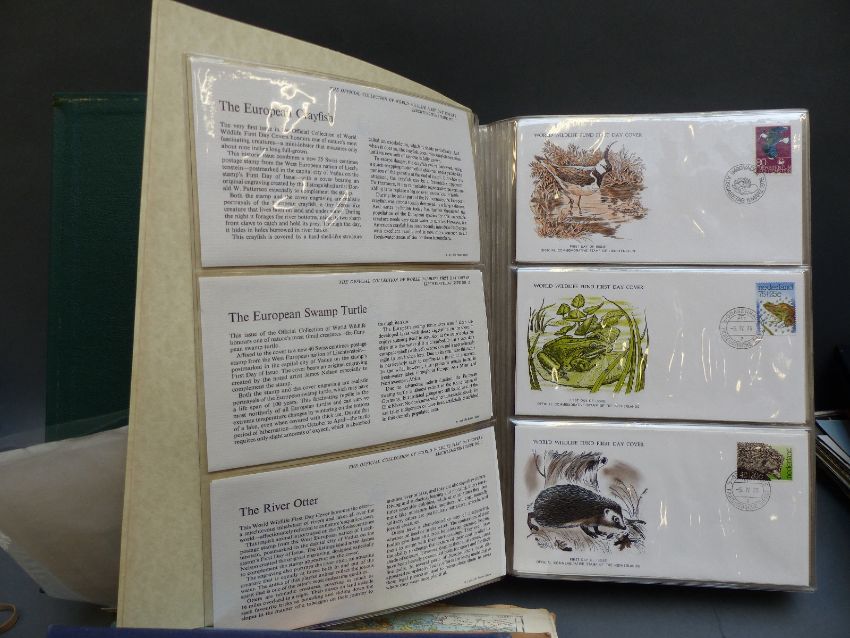 Two albums of first day covers including the official collection of World Wildlife first day covers, loose stamps, covers & album pages including early Commonwealth