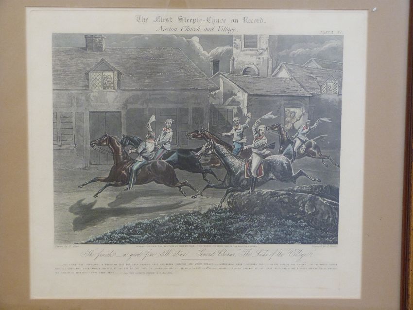 Two horse racing prints "The first Steeple Chase" and "Tattenham Corner" 50x77cm