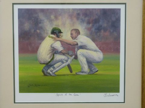 Jack Russell signed print "Spirit of the Game" also numbered 20G lower right, 31x34cm