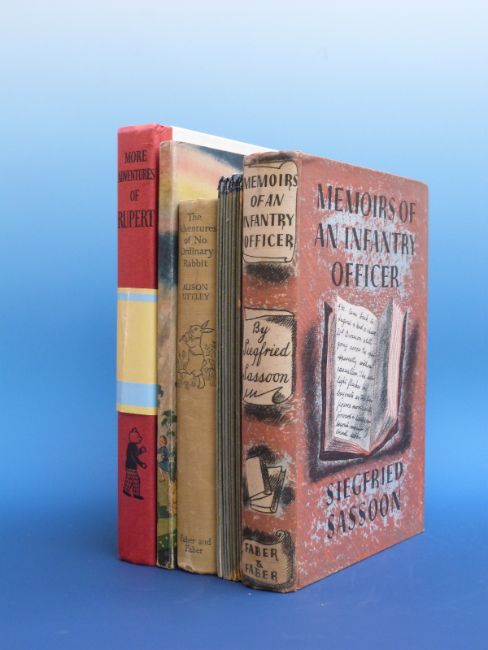 Daily Express Rupert annual, including a facsimile of the 1937 annual More Adventures of Rupert, plus Alison Uttley, The Adventures of No Ordinary Rabbit (London, Faber & Faber, 1937); Siegfried Sassoon, Memoirs of an Infantry Officer (London, Faber & Faber, 1931) illustrated by Barnett Freedman, and a collection of Bible Stories