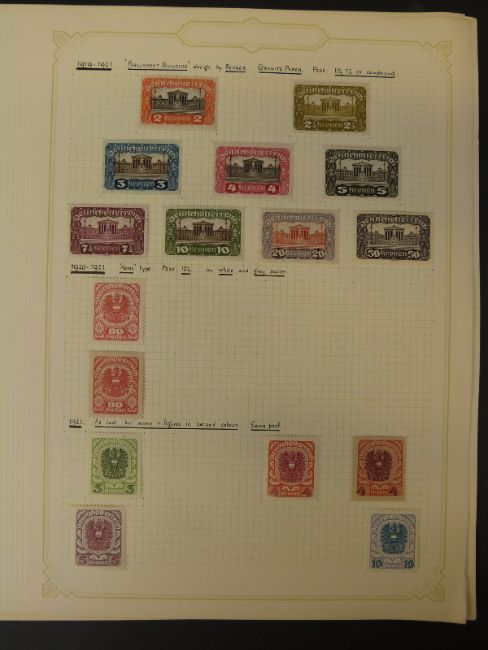 A quantity of loose album paper including a mint collection of early Austria stamps