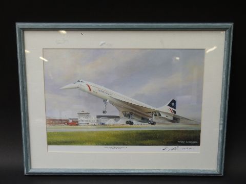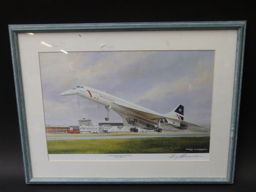 Terry Harrison signed print "Concorde at Farnborough" 22x32cm