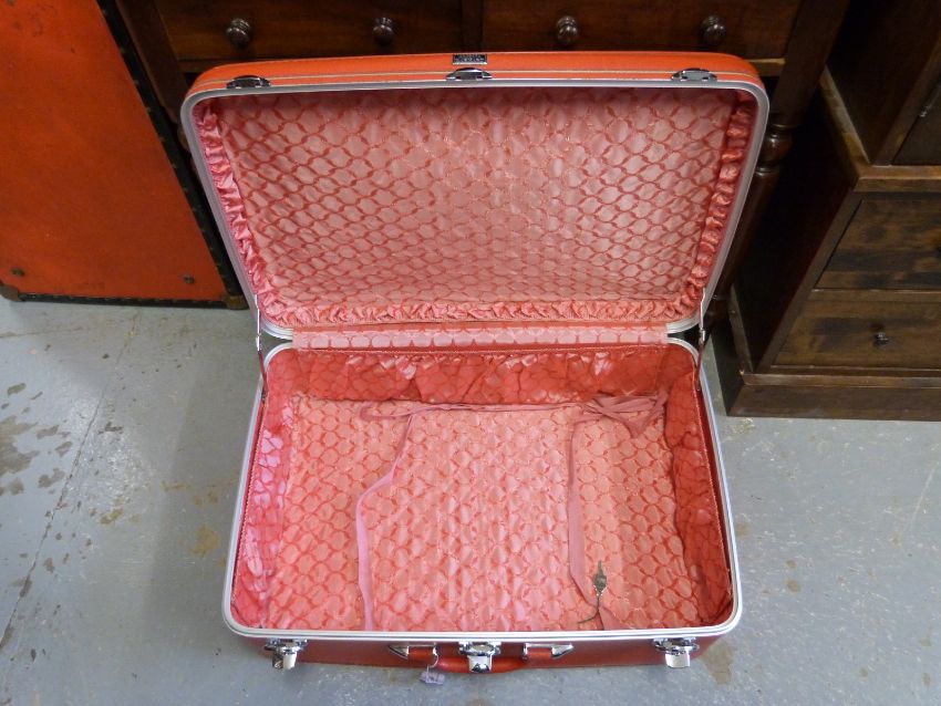 A vintage Emelia Earheart red suitcase, 68cm wide