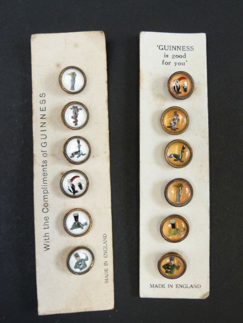 Two sets of reverse painted Guinness buttons, a Beswick golden eagle and two miniature bottles of Guinness