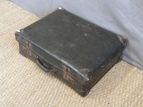 A vintage leather bound suitcase, width 51cm