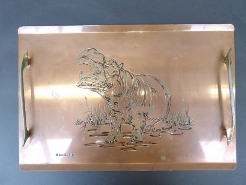 A Rhodesia hippo copper tray and similar style picture