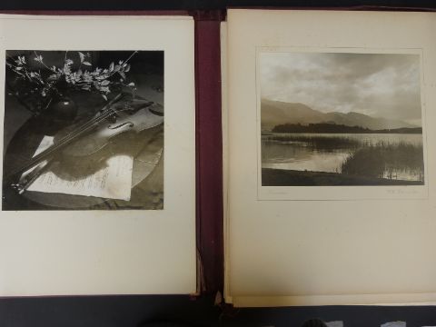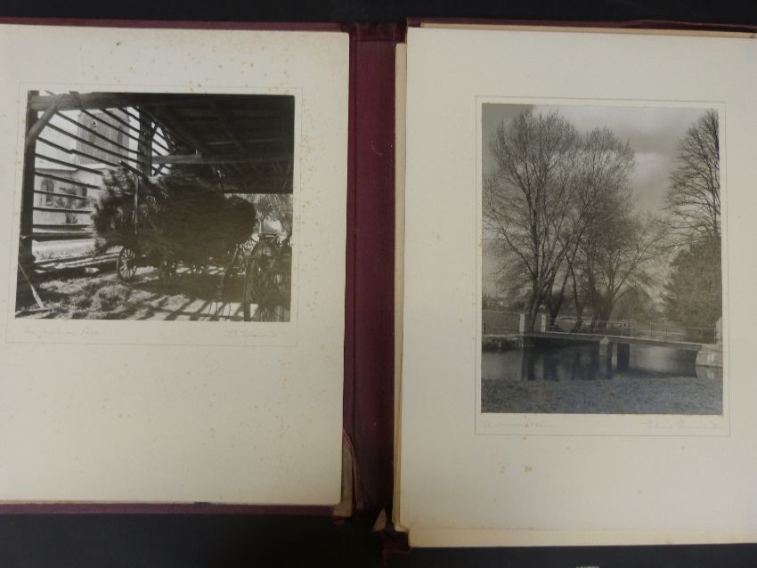 A folio of approximately 35 mounted photographs, most signed either J.E.Edmonds or Elsie Edmonds and with label verso on most for the Norwich and District Photographic Society as having being exhibited in the 1930's, scenes include Norwich, Venice, Austria etc, mostly 50 x 40cm overall