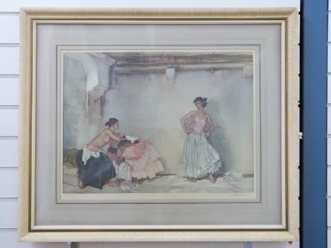 Signed William Russell Flint print of two ladies, signed to margin in pencil 48x62cm in gilt frame