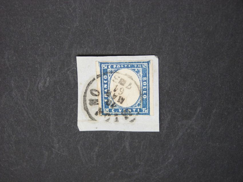 Italy 1862 20c blue, SG 2a used on piece