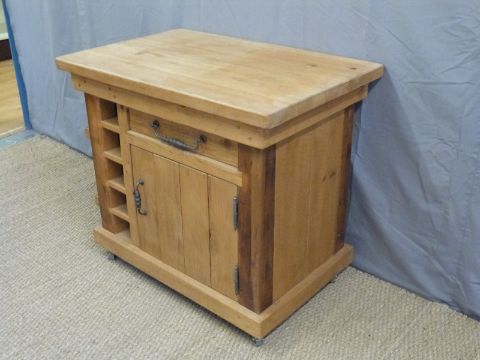 A pine kitchen island unit fitted with drawers, cupboards and wine rack (L99 x D64 x H87cm)