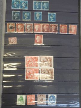 Two stockbooks and a quantity of loose album pages of GB stamps, includes blocks, control numbers, mint George V, George VI high values, booklets etc