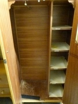 A retro Homeworthy bedroom suite, two wardrobes, a dressing table and a bedside cabinet