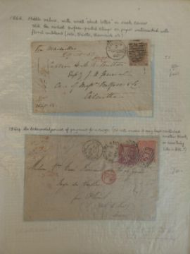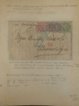 A selection of 13 GB surface printed stamps on cover or loose album pages. Includes 1890 cover with 1 1/2d of 1883 set with special handstamp for Penny Postage Jubilee 2nd July 1890. The remainder overseas mail
