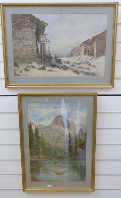 F. Dupont player two Alpine watercolours, one a lake scene, 51x34cm, the other mills by a stream, 34x51cm