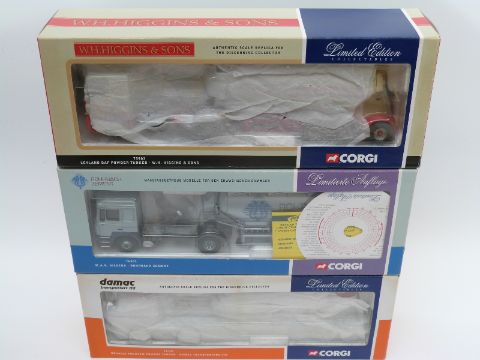 Three Corgi limited edition 1:50 scale diecast model tanker lorries Damac 76101, Rohrbach Zement 76301 and W H Higgins & Sons 75903, all in original boxes