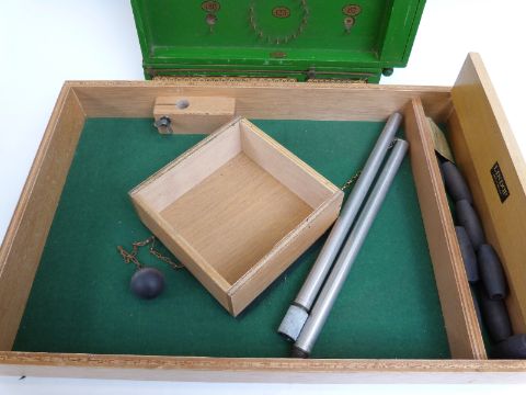 Chad Valley Bagatelle board and a William Lindop table skittles set