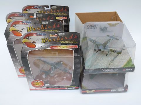 Six Corgi diecast model aeroplanes including The Aviation Archive and Warbirds, all in original boxes