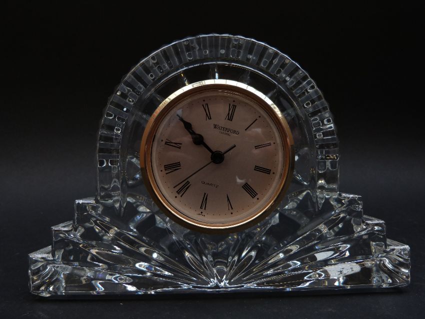 Waterford Crystal cut crystal cottage clock, in original box with paperwork (12 cm tall)