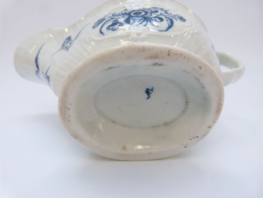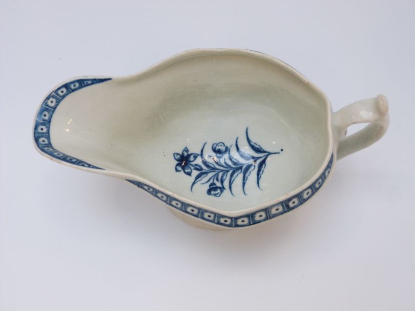 A first period Worcester pedestal sauce boat with marks to base (length 17cm)