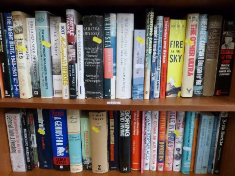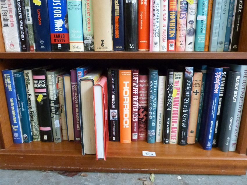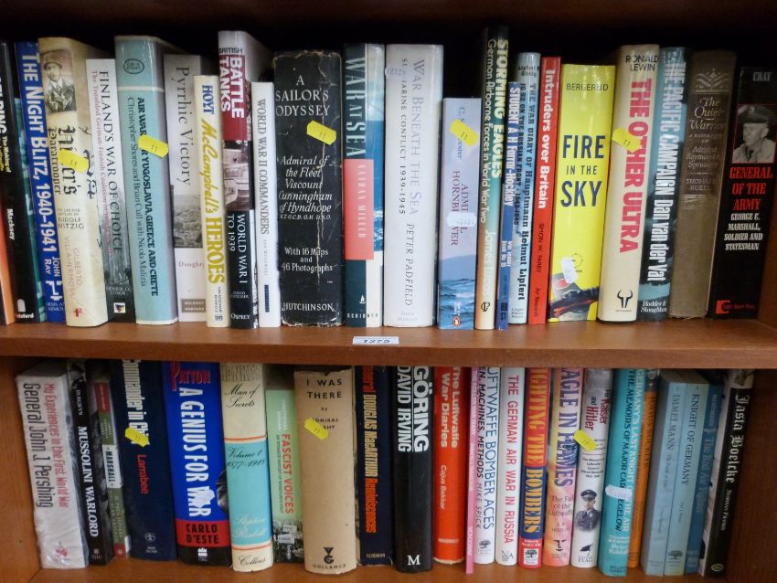 A collection of hardback books relating to the Second World War, subjects include Mussolini, World War II Commanders, Schnaufer, the Red Air Fighter etc