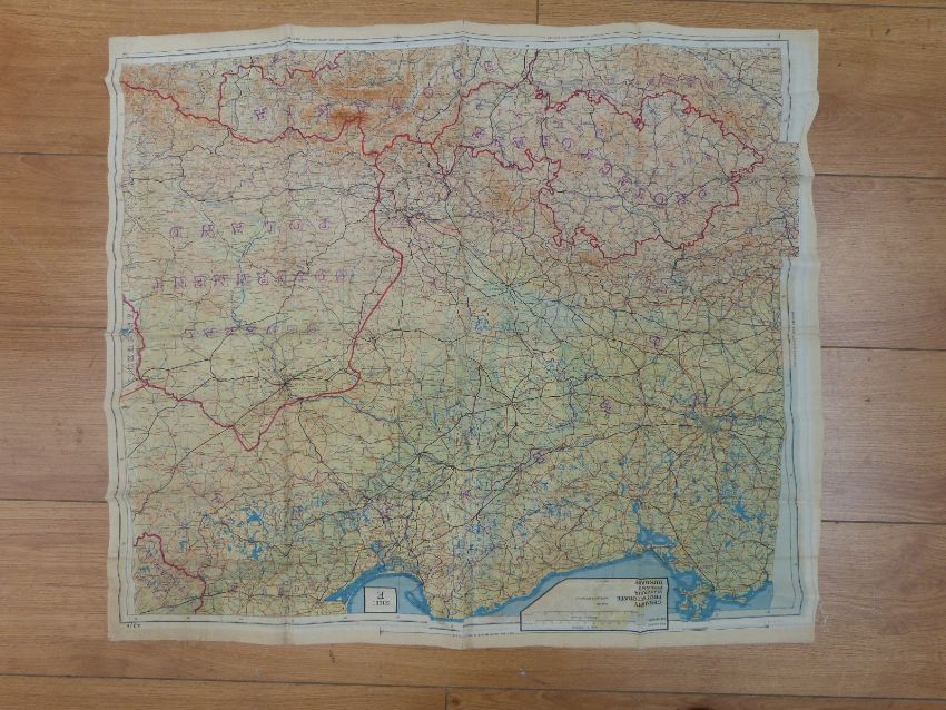 A double sided silk escapee map of Germany and surrounding areas