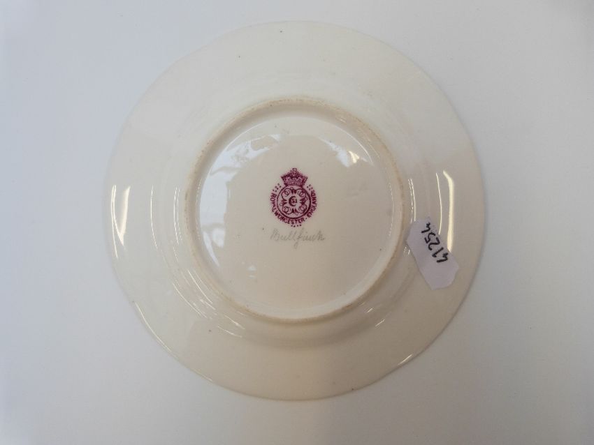 Three Royal Worcester plates hand decorated with birds (12.5cm diameter)