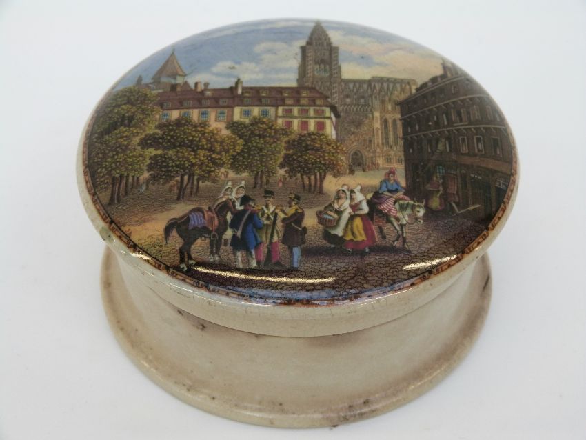 A Prattware pot and lid.
