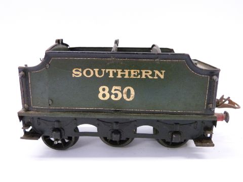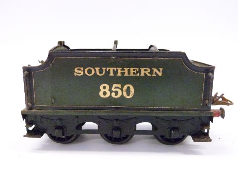 Hornby 0 gauge electric GWR 0-4-0 tank locomotive 4560 together with a Hornby 0 gauge Southern 850 tender and an Exley 0 gauge carriage