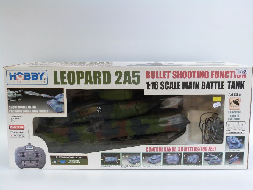 Hobby Engine 1:16 scale remote control Leopard 2A5 bullet shooting tank, in original box