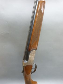 Maestro 20 bore over and under ejector shotgun with, ornate scrolling engraving, 28inch barrels, vented top rib, chequered semi-pistol grip and double trigger, overall length 112.5cm, serial number 89685. PLEASE NOTE THAT A VALID RELEVANT FIREARMS/SHOTGUN CERTIFICATE IS REQUIRED TO HANDLE/PURCHASE THIS ITEM.