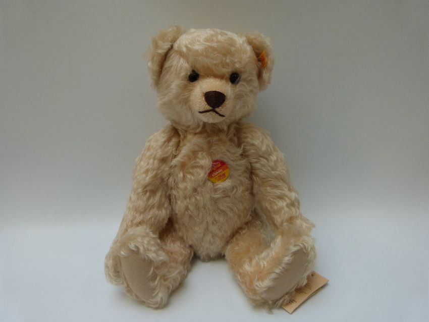 Steiff Original Classic teddy bear 005145, with blonde mohair, growler, button to ear and tags, 40cm tall