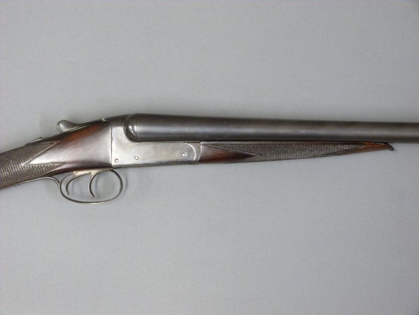 Joseph Bradell 12 gauge side by side double barrelled shotgun with 28 inch barrels named 'J Braddell & Son Belfast', serial number 7230, overall length 113cm. PLEASE NOTE THAT A VALID RELEVANT FIREARMS/SHOTGUN CERTIFICATE IS REQUIRED TO HANDLE/PURCHASE THIS ITEM.