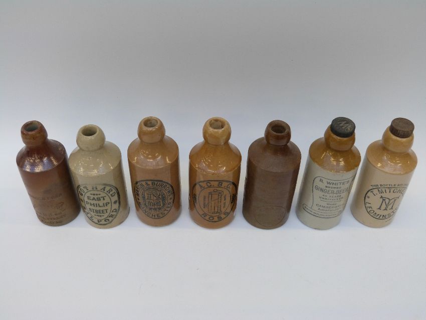 Seven stoneware bottles including Salford, Manchester and London